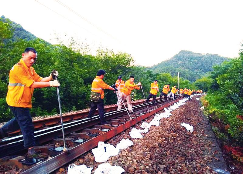 “今天的任务是更换金千线新安江南至排塘区段500米钢轨,区间内线路坡度大、曲线半径小,全程要采用人工翻轨,安全风险大,大家要全力以赴。”7月23日,上海工务大修段线路四车间主任徐晓晗在班前会上发出动员令。