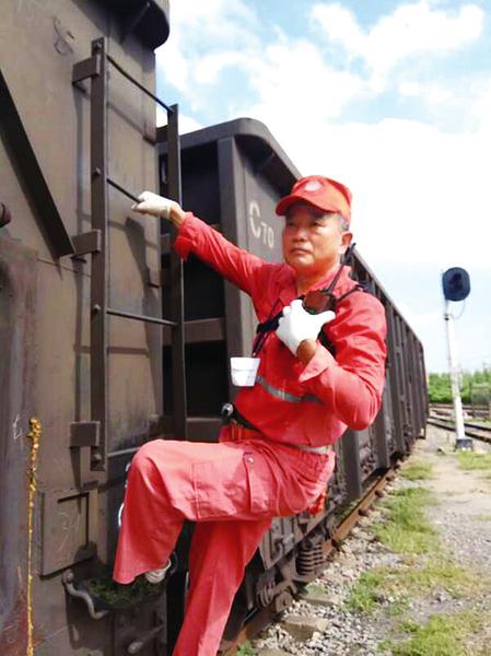 此时,骄阳似火。王钧身着厚厚的长袖、长裤,带上棉手套,在机车和1-5节车区间走动,顾不上擦去汗水,拿着工作计划作业单向机车头方向跑过去,与司机对接工作计划、提示工作关键环节……