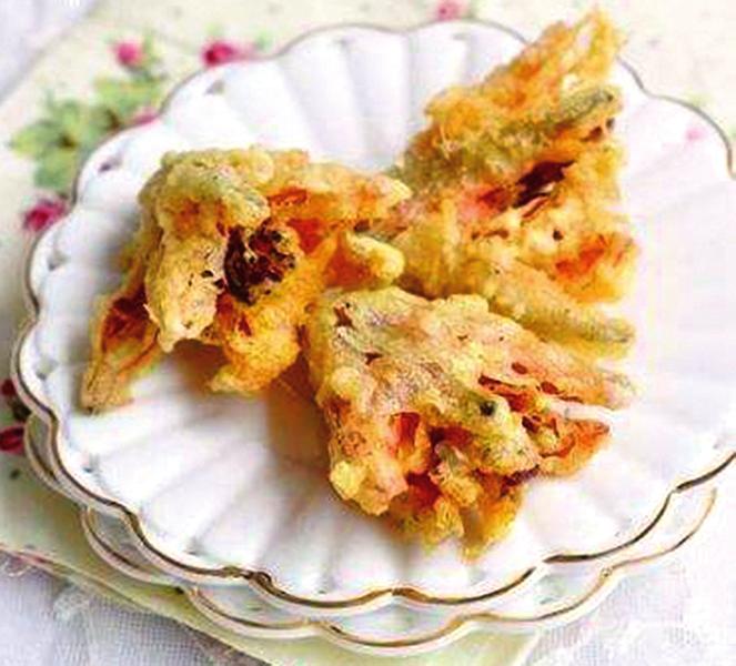 朋友说,炸百合花的过程,壮观得足以令人瞠目结舌——挤干水分的百合花裹上面糊后,形似一条干瘪的黄瓜,老态龙钟毫无生气。可把它放入油锅时,奇迹便发生了:那紧紧闭合的花瓣们像是听到了一声号令,突然间挺直了身子,随着热油的浸入,慢慢绽放开来,真正是“忽如一夜春风来,千树万树梨花开”。就那么在厨师的眼皮底下,在热油锅中,一瓣瓣、一层层绽放,一直绽放到采摘前的“鲜花”状态为止。于是,食客在餐桌上便看到了一朵朵穿着薄薄“外衣”(面糊),散发着浓香的饱满百合花。