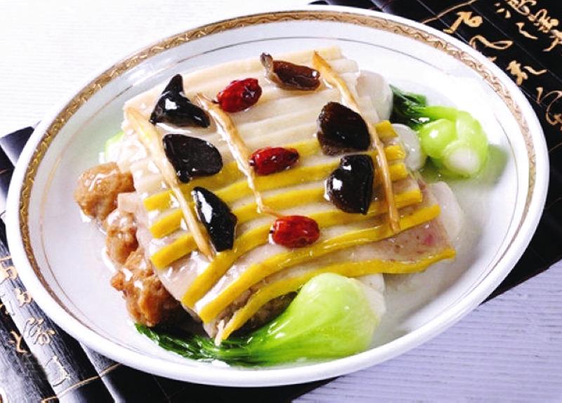 烧一锅乳白的高汤,然后把鱼丸、肉丸、肉糕一起放在高汤中,稍稍加热,再放入发好的黄花菜、黑木耳、小白菜、胡萝卜丝,收汤后,一盘黄陂三鲜便香喷喷出锅了。一道菜,融合了汆、炸、蒸、烧四种烹饪技法,三菜一碗,两白一金,色香味俱佳,而汤汁则融合了三味的精华,不能不说是精品。