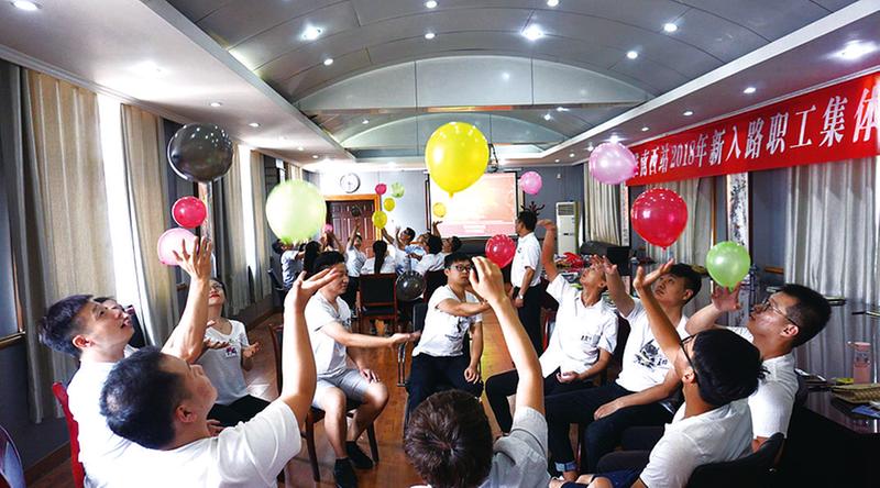 淮南西站组织新职工进行体验式培训(郭磊 摄)