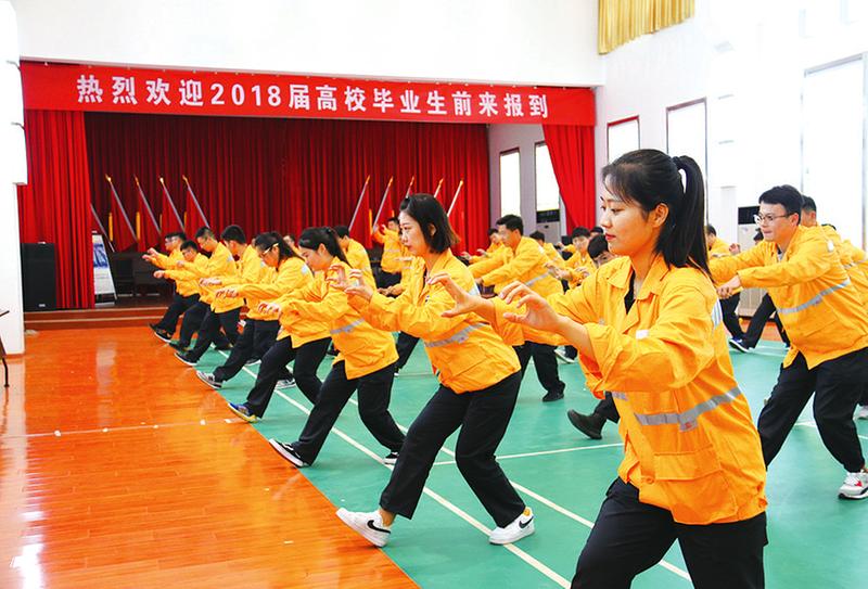 阜阳工务段新职工学五禽戏(孙华方 摄)