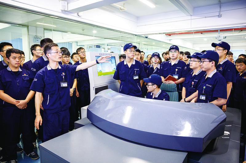 南京动车段新职工观摩动车组司机实训室(葛飞 摄)