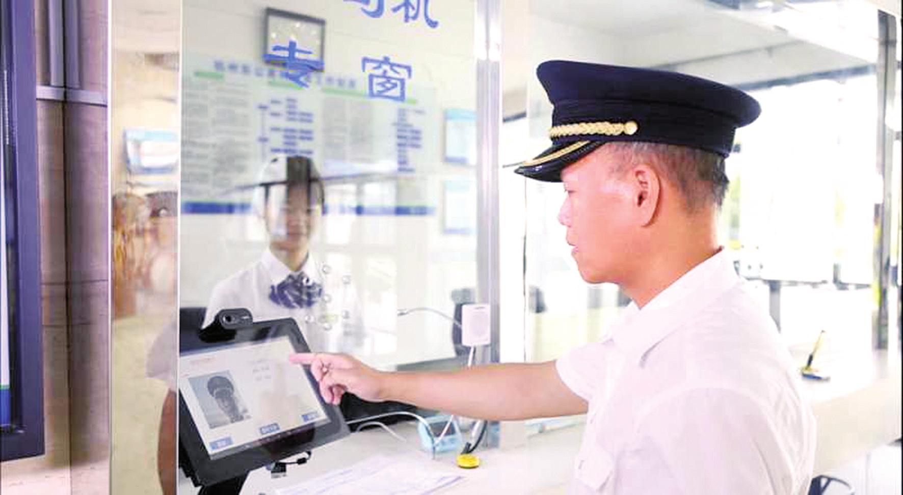 图为司机刷脸入住。 本报讯(记者 沈滨 通讯员 王晨伊 摄影报道)9月3日,杭州机务段高铁司机郑涛在杭州东公寓人脸识别系统前刷脸2秒,即完成间休入住手续,由此浙江铁道生活公司的门禁管理正式迈入刷脸时代。