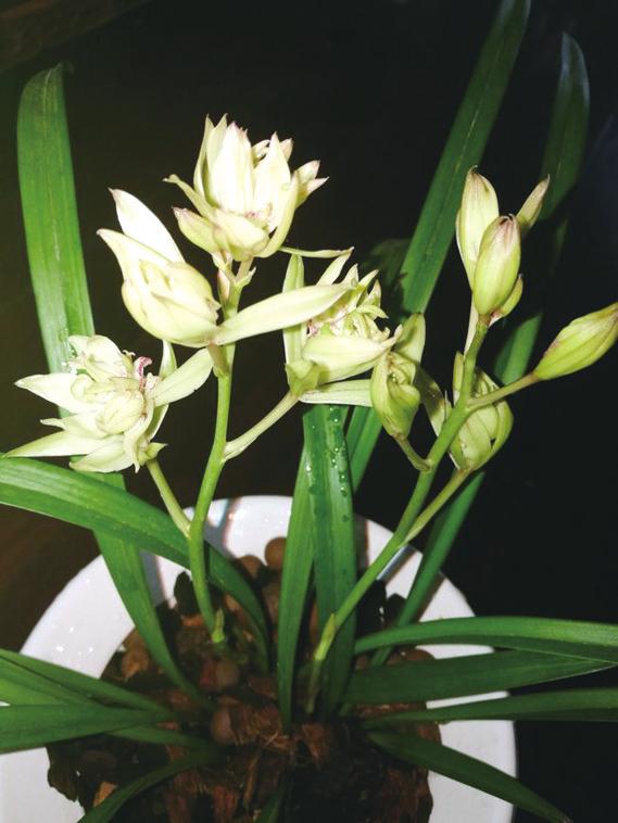 说明:富山奇蝶,兰花中的一个奇异品种,因其花瓣形态和色彩酷似蝴蝶翅膀而得名。第34届教师节当天,家中的一盆建兰“富山奇蝶”一大早便悄悄绽开了奇特的花朵,阵阵幽香飘来,似乎在向广大辛勤的园丁致意。