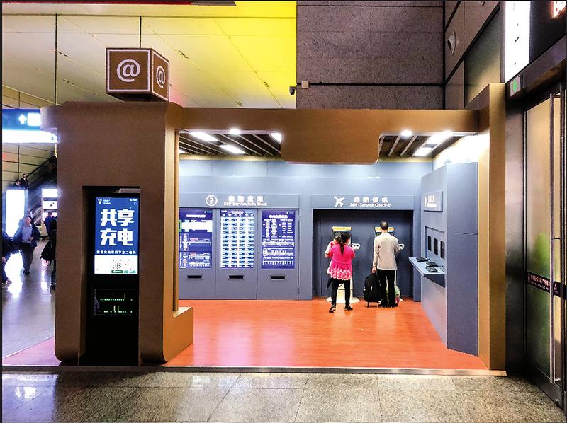 改造后的互联网E站分为购票区、信息查询区、空铁联运区、手机充电区等区域,充分满足旅客出行的一站式服务需求。特别是针对车站与虹桥机场相连的特点,与东航联动引进了自助值机的机器,实现了空铁之间的真正“零换乘”。