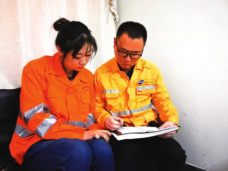 日前,在庐铜铁路龙桥站上,合肥工务段的曹伟为刚刚大机精调结束的上海大型养路机械运用检修段的王静递了瓶水,不时地关怀几句。原来他们既是夫妻,又是工友。