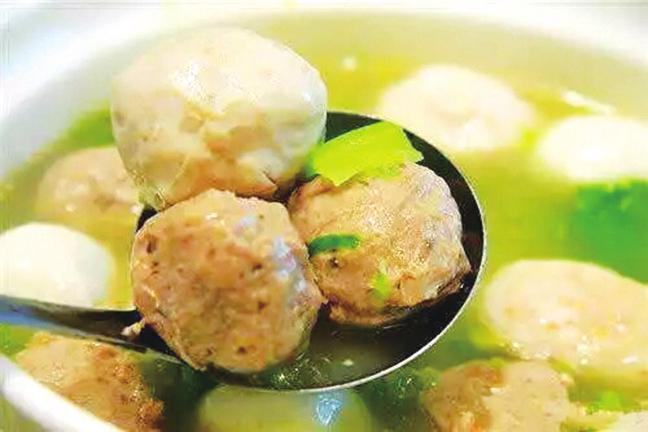 5.制熟:将锅移至灶上点火,待水面有小水泡时用勺助鱼丸翻身,水面始终保持沸而不腾的状态,见水欲开时加冷水,反复三次,鱼圆即定型成熟。