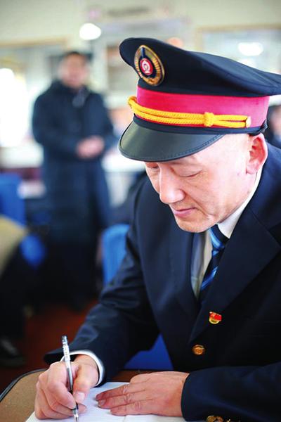 曾获得过火车头奖章、济南铁路局优秀共产党员、徐州市劳动模范称号的尹新华刚从工长的位置上退下来。对于他主动报名参加春运临客乘务工作,大家很不理解:“辛辛苦苦干了一辈子,不轻轻松松等着退休,还要再去春运一线受累。”可闲不住的尹新华却说:“我从16岁入路,换了多少个岗位,什么苦活累活没干过。今年正好有这个机会,我要在车上站好最后一班岗!”