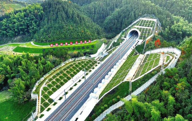 精心设计 绿色长廊在延伸 动车组列车穿行在杭黄高铁,仿佛游走在一条生态绿色长廊中,让人赏心悦目的不仅有名山名水,更有线路两侧连绵不断、葱翠欲滴的乔木灌丛。