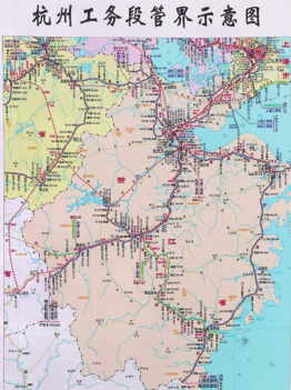 几年前,笔者偶然见到一幅以天然丝绸为介质的浙江省铁路管界示意图。据负责此图制作的杭州工务段技术人员介绍,这幅示意图是供抗洪防涝指挥和抢修水毁线路所用。当时该段1400多公里线路中,三分之二处于山区和丘陵地带,每年都会经受台风和洪水考验,经常发生洪水威胁线路设备情况。在抗洪抢险现场,纸质图纸极易损毁,因此制作了这幅既便于携带、又不易被雨水侵蚀的丝绸“管界示意图”。示意图以该段管辖线路为主体,也包括与其接壤的沪苏皖闽赣五省市范围的部分铁路线路。