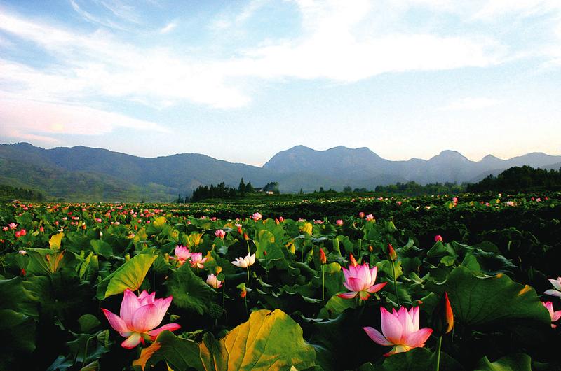 “绿叶丛中半露娇,蛾眉尚未倩人描。纤纤细手提红瓣,荡桨低头过小桥。”写下如此绝句的是500多年前建德当地女诗人吴氏,这首《采莲曲》赞颂的是建德著名的“十里荷花”。