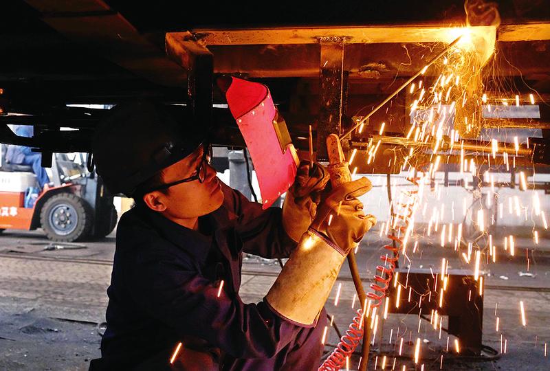 图为张雷鸣在焊接作业。(余爱国 摄) 通讯员 黄江燚