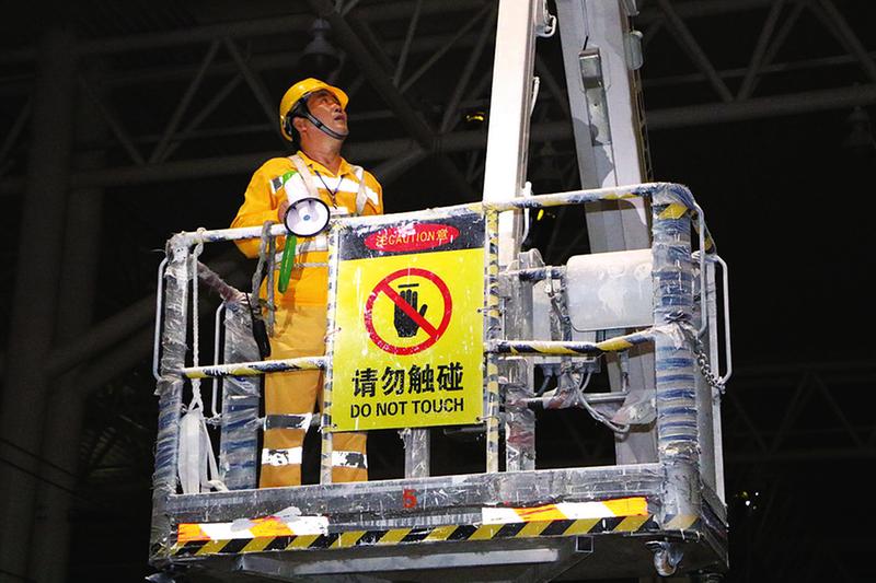 8月21日2:30,深夜的温州南高铁站站台灯火通明,没了白日的喧嚣,却多了一些忙碌的身影。杭州房建公寓段宁波车间宁波水电工区工长张剑华带领十几个人,身背各种设备,攀上温州南站雨棚,不多时,一声声指令和金属的敲打声打破了深夜的宁静,雨棚整治作业开始了。