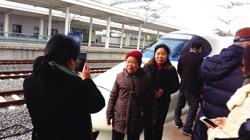图宁安城际铁路开通运营当日,旅客在安庆站与动车留影。 2015年5月20日,中宣部在中央电视台以“我们的价值观、我们的中国梦”为主题,发布全国“时代楷模”南京站“158”雷锋服务站先进集体的先进事迹,这是铁路系统首次获得全国“时代楷模”称号。