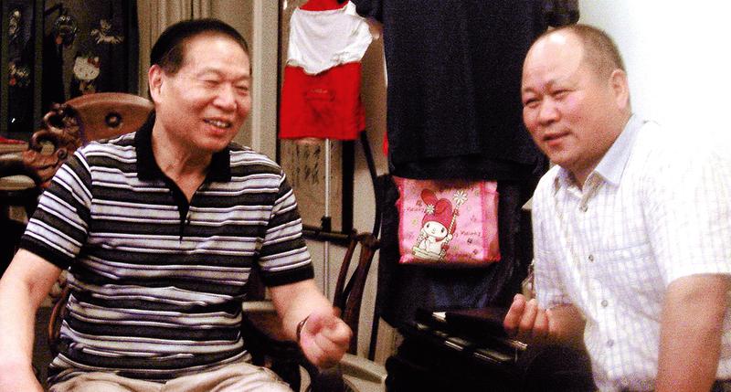 作者与当年的安华养路工区工长李兰发(右)探讨“安华精神” 李庆鸿 文 陈少波 供图