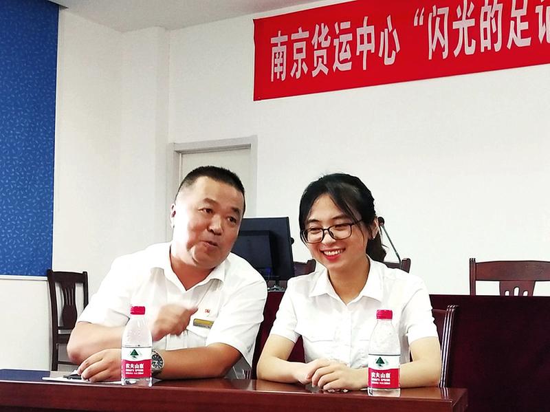 1988年,张颂入路工作,在货运一干就是31年,现在是南京货运中心芜湖经营部的一名经验丰富的货运员。他这位“老货运”都带了好几拨徒弟了,去年带了个小徒弟,名叫朱莹,是个90后软萌妹子,笑起来甜甜的,很是可爱。