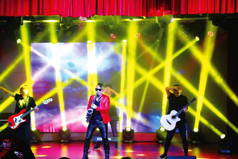 萨克斯是由比利时人阿道夫·萨克斯于1840年发明的,阿道夫是位乐器制造者,擅长黑管和长笛演奏。他最初设想是为管弦乐队设计一款低音乐器——吹奏灵活并能适应室外演出。当他设计制作成功后以自己名字“萨克斯”命名新乐器,即兴演奏是它特色。演奏萨克斯工作照舞台演出全家福
