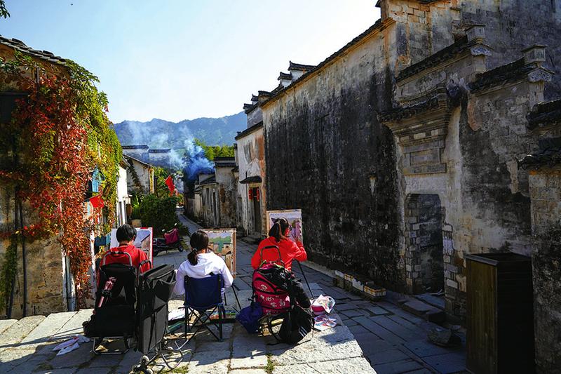 与宏村、西递等古村相比,屏山村显得更宁静,日常只见有稀少游客,旁若无人写生学生,偶尔穿街走巷小马车。至夜晚,星空点亮村落,不闻狗吠,唯有穿村而过潺潺溪流声。在这居住,枕溪而眠,尽享宁静。