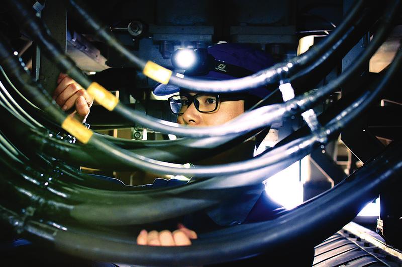 与动车组机械师常年相伴的是工具,小到指甲盖大小的螺丝螺帽,大到起重机才能吊装的部件,无不是机械师们用双手去安装。在现场往往能看到一些有趣的画面,从动车头罩内突然冒出人来,从车底下钻出“黑黝黝的人”。春运中,在各自岗位上,每一位机械师都坚守着同一份责任,确保动车组运行安全、万无一失。