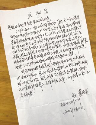 本是随手做了件小事,让李晓晨没想到的是,为表示感谢,失主的女婿黄先生特意寄来了锦旗和手写的感谢信。他说岳母本想疫情结束后来巢湖站领取,没想到工作人员贴心地用快递寄到了家。他们找了好些地方,终于找到一家在疫情期间可以做锦旗的店。黄先生表示,他们想表达出最诚恳的谢意。