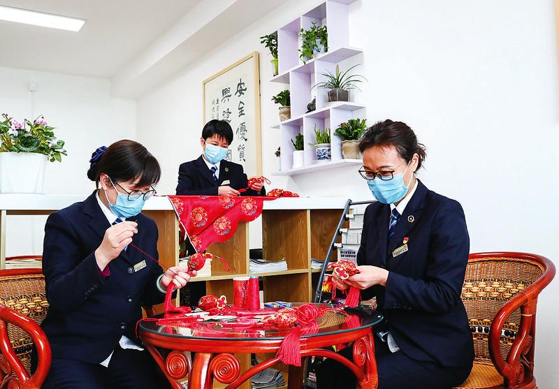 图为该段徐州二公寓高铁班组叫班员在制作香包。 刘钟千/文 余爱国/摄