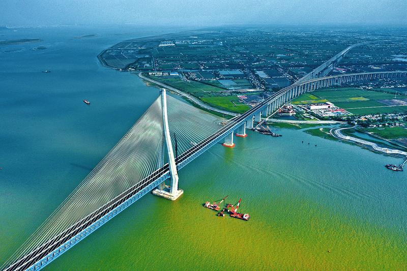 在宽度近6公里的长江入海口附近建造公铁大桥,是世界级难题。建设者与国内知名钢铁、制索企业一起攻关,研发出强度为500兆帕的桥梁用钢材和强度为2000兆帕的钢索,这也是该种新型材料在国内桥梁上的首次应用。