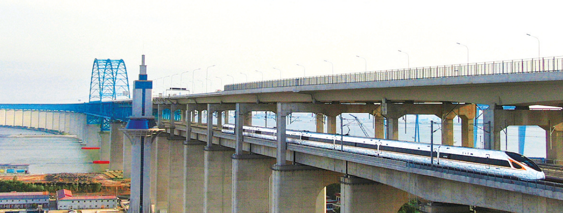 复兴号列车驶过沪通长江大桥