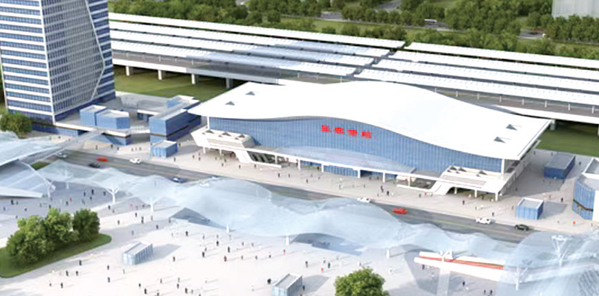 站位于张家港市塘桥镇新204国道东侧。车站总建筑面积10980平方米,站房主体2层,局部3层,高度25.3米,站房主体结构为钢筋混凝土框架结构,候车厅采用钢网架结构。