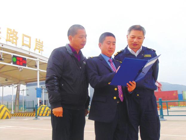 图为吕小庆(中)在义务铁路口岸与客户交流。马锦标 摄 实习记者 朱明轩 通讯员 马锦标
