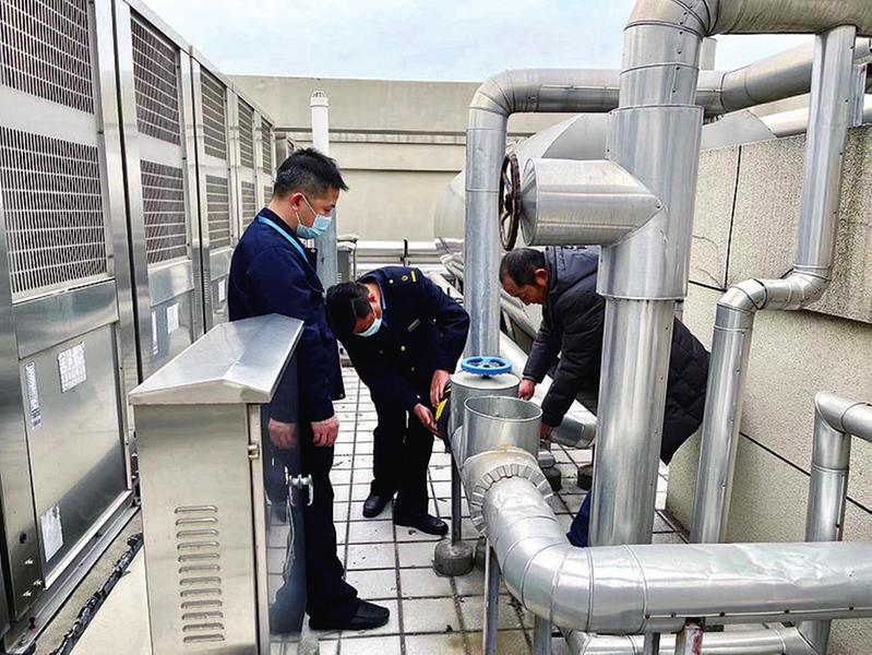 图④:合肥给水公司职工对上水栓设备进行防寒保暖。(通讯员 霍世强 摄)