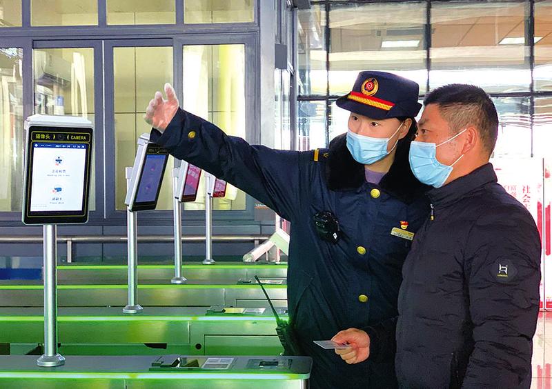 图为徐琳在闸机口引导旅客乘降。 通讯员 王志武 文/摄