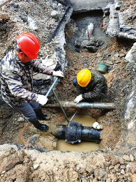 水压表和失水量仍不正常,说明还有渗漏点,大家又对更隐蔽的管道进行筛探。由于白天杂音较多,实难对轻微渗漏进行精准探测。夜里11点多,公司安设部的董松和其他查漏人员不顾寒冷,趴在地上对最有可能出现漏点的区域反复倾听验证……