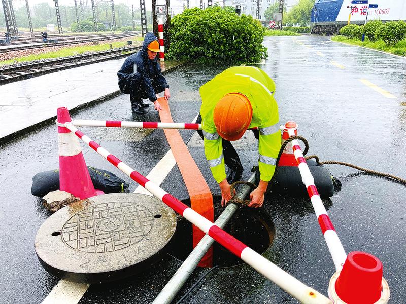 图②杭州机辆段职工加强库区排水设施检查整治。(通讯员 吕俣森 摄)