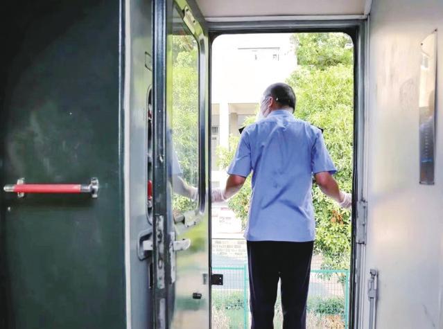 开车前,徐黎明带领大家做起了准备工作,擦桌子、拖地、整理窗帘……车上的列车员年纪都比较大了,做起卫生来十分认真,边边角角都擦得干干净净。