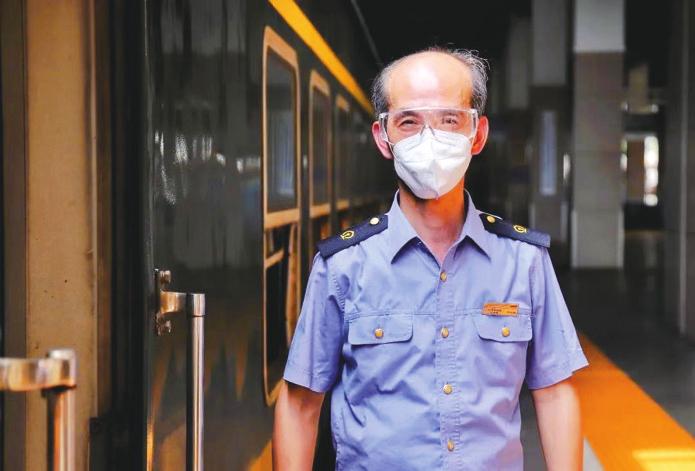 下午2点,杭州站站台,在车门口立岗的杭州客运段乘务员俞自强,今年已经59岁,还有一年就要退休的他,在这趟车上已经工作了15年。