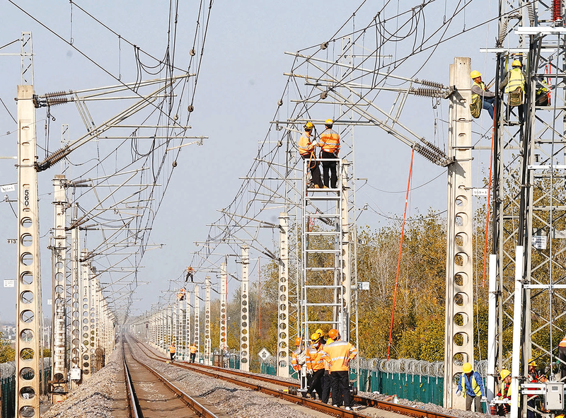 为提升供电设备运行质量,合肥供电段组织青年职工,对接触网重点设备进行检查整治,及时排查隐患。图为该段阜阳供电车间青工对京九线阜阳站至淮滨站区间接触网设备进行全面检查整治。