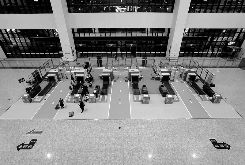 阜阳西站对安检区域标识蓝黄灰色区,方便安检作业和旅客出行。