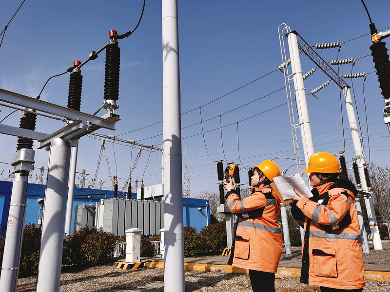 图④:1 月21 日,合肥供电段阜阳检修车间牵引所值守人员加大当班巡检频次,对供电设备关键部位进行动态测温。 (通讯员 陶杰 摄)
