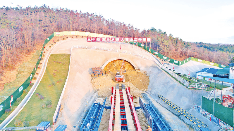 2月23日,安徽省马鞍山市境内的巢马城际铁路江北段大曹山一号、大曹山二号隧道进口处机器轰鸣,两座隧道同时正式进入洞身施工阶段,标志着巢马城际铁路江北段隧道施工全面铺开,项目建设加速推进。 (宁安铁路公司供图)