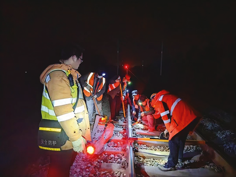 5时整,一场春夜里的“攻坚战”顺利结束,大型养路机械连挂成列,随着一声声汽笛缓缓驶出线路,作业人员、工机具全部撤出栅栏网。