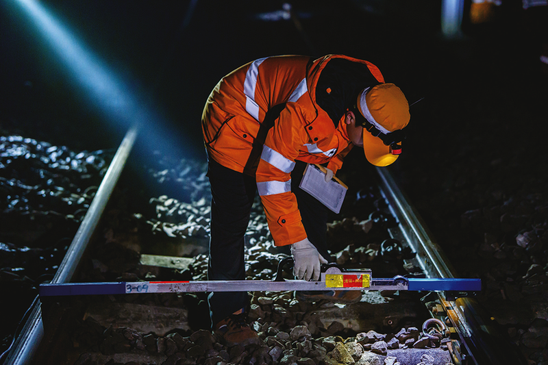 3时许,气温降至零下1摄氏度,各项作业仍在有序进行。今年刚满27岁的青年突击队队长王齐猫着腰,手扶着电子水准仪,目不转睛地观测大机清筛结合部的线路状态,重点掌握分析线路线形沉降
