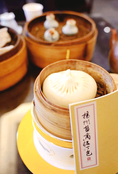 蟹黄汤包也是颇受食客推崇的点心,一只硕大的包子包裹着充足的蟹黄与精肉,汤汁充足到没法直接用嘴吃,必须用一支吸管,先将包子里的汤汁吸尽再大快朵颐。点心好吃,多吃却难免油腻,须得佐以香茗方才爽利。