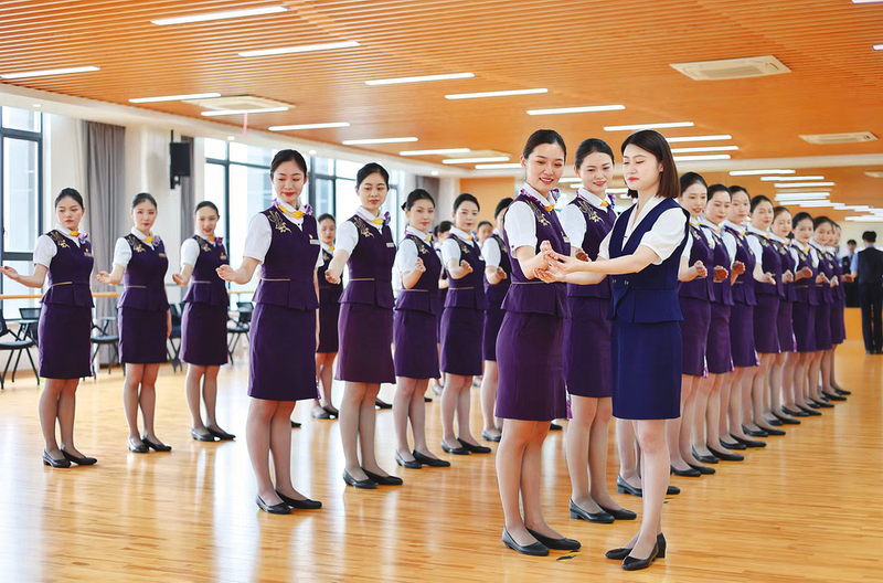 杭州客运段精心挑选44名业务技能精、外形条件好、综合素质强的乘务人员,组建亚运服务专班,专门负责杭州亚运会期间高铁乘务工作。图为6月13日,亚运服务专班乘务人员在诸暨客运培训基地进行专项补强培训。