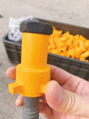 图②:该段职工发明的螺旋道钉定位器。 (通讯员 汤锦州 摄) 本报讯(通讯员 张文宇)“螺旋道钉插入后自动居中,职工再也不需要用眼睛估量是否有偏差了。”近日,徐州工务段职工发明的螺旋道钉定位器在徐州铜山货场轨枕锚固作业现场运用,整齐划一的螺旋道钉令该段重点维修二车间主任刘四辈连竖大拇指。