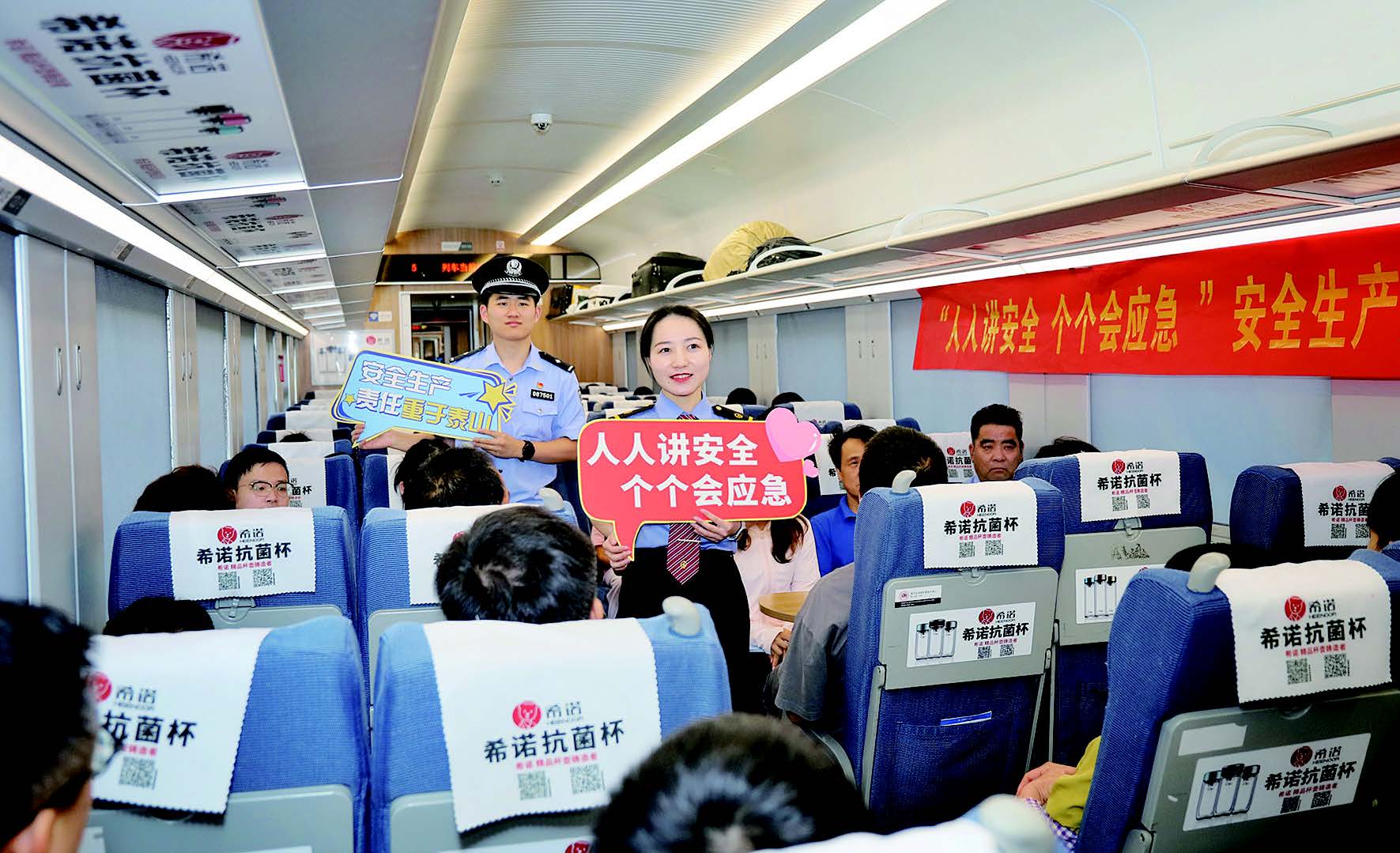 杭州客运段向旅客宣传高铁安全出行知识。 周围 摄
