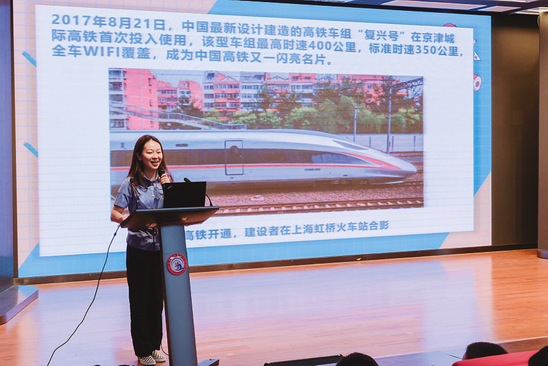 上海电务段团员青年走进校园,普及高铁知识。 张阳 摄