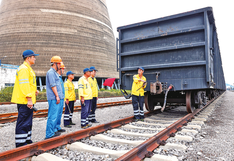 南京东车辆段认真落实集团公司关于开展第三十二个“爱车周”活动的部署要求,通过制作爱车宣传图册、专业技术人员实地讲解、车辆抽查等形式,对相关单位进行爱车、护车宣传,从源头上抓好专用线发出列车的质量控制。图为在江苏徐矿综合利用发电有限公司专用线,该段高级工人技师张恒远正在向该公司有关工作人员认真讲解爱车和护车知识。