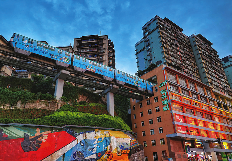 李子坝曾是当年地下党员的秘密接头地点,如今一条轻轨架在半空,每隔三分钟就有一列轻轨列车疾驶而来,并从一幢幢高楼群中穿越而过,“李子坝轻轨穿楼观景平台”成了众多游客高举相机和手机争相拍摄这一奇景的网红景点。联想到《红岩》中提及的这几处地名,我心中油然萌生出“萧瑟秋风今又是,换了人间”的感慨。