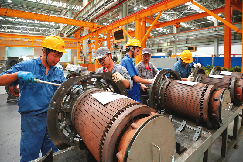 上海机车检修段持续推进机车关键部件自主修工作,通过加强组织协调、紧盯检修关键、健全技术标准、开展技术攻关等举措,推进首台HXD1C机车驱动装置自主修顺利进行。图为该段转向架车间牵引电机组职工正在与株机电机公司职工进行技术对接。